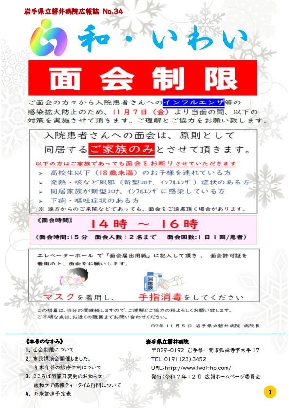 広報誌「和・いわい」は、市民への情報提供を目的として、当院の様々な情報を発信しております。